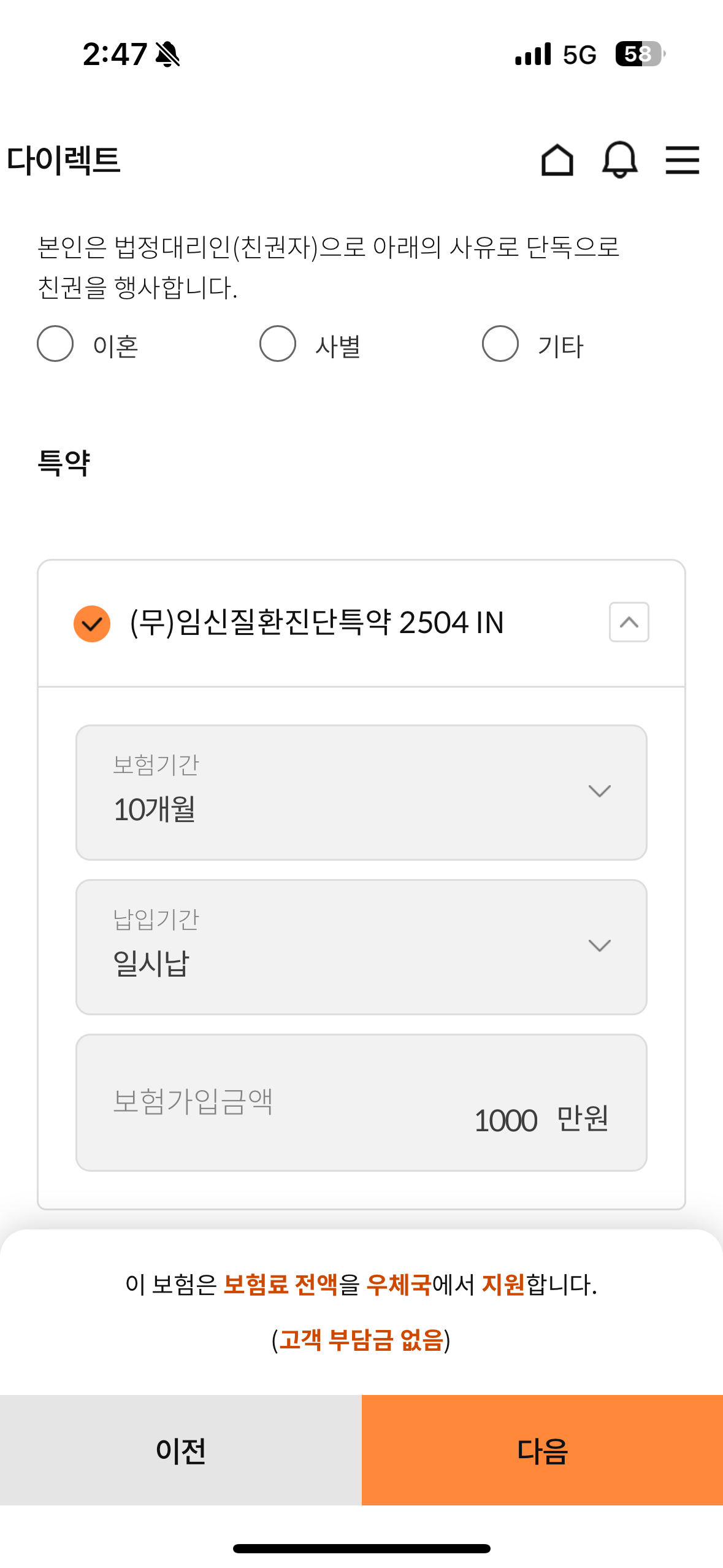 우체국 보험은 무료지만 임신 기간 동안에만 보장이 되기 때문에